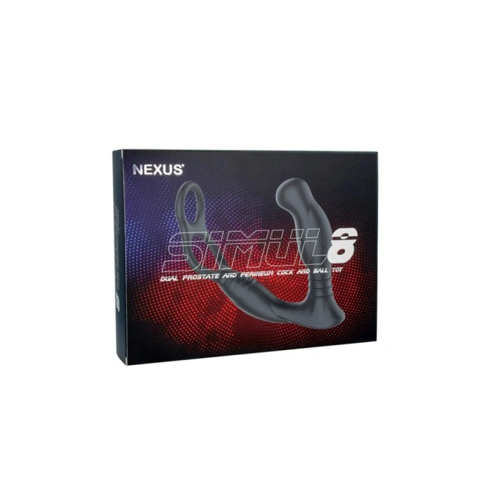 The Nexus Simul8 is a vibrating cock, ball and anal toy all in one delcious package. The vibrating shaft on the Nexus Simul8 is designed to stimulate the prostate, and the vibrating base is shaped to stimulate the perineum at the same time. There are two stretchy yet firm rings that can go around the testicles and penis to increase sensation, and create a yummy tugging sensation between the massager and rings. There are two buttons on the bottom which control each vibrating motor independently, and it’s fully waterproof!