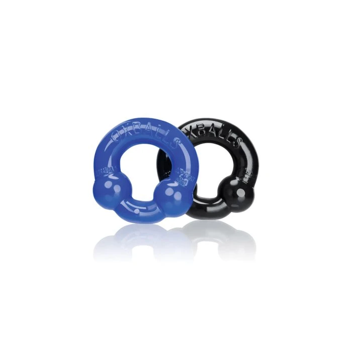 Ultraballs are a unique redesign of the classic donut cock ring shape. The underside of the each ring has two thick, blubbery nodules that work as pressure points, resting underneath the shaft or balls. Wear one around your balls with the other around the shaft, double them up, or split a pack with a friend!